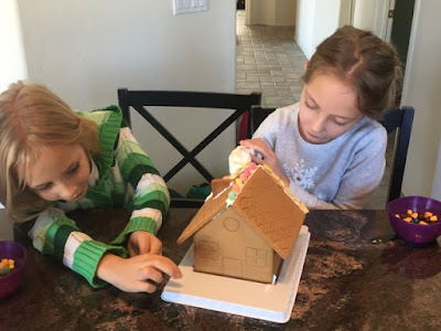 The girls have been obsessed with The Trolls ever since their date with Uncle Dan and Aunt Erin so it was only fitting that this year's gingerbread house was in Troll style! They worked hard and worked together to create a masterpiece!